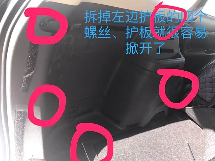 在尾箱接主控线时需要按如下拆掉后尾箱左侧护板: