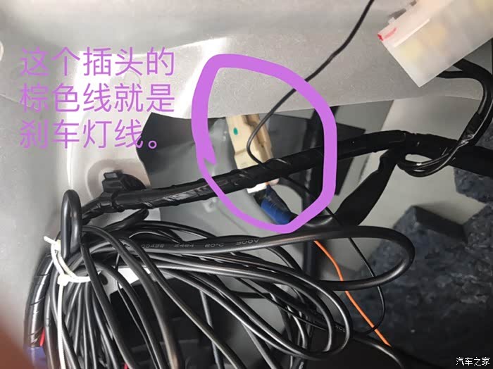 同样位置另外有个只有四根线的尾灯插头、找到棕色线就是刹车灯线。