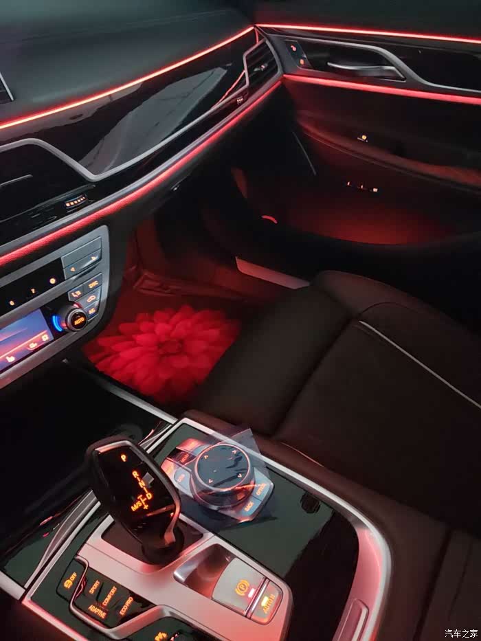 车钥匙选的红色,红色为火,配宝马7系这个数字。内饰脚垫考虑到空间太大,如果一个颜色的话会很空,所以选了图案,这样可以凸显空间,夜晚还有3d效果,寓意也比较吉祥。