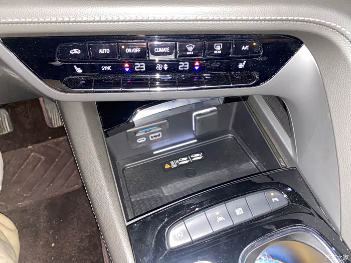 内饰的用料在同级别中也是数一数二,仪表台大部分由软质材料包裹,新车开回来就没什么异味,足见用料环保安全。座椅摸上去非常舒服,仔细瞧还是真皮打孔,非常透气。中控档位换成按键式换挡,刚开始用着有点不习惯,现在觉得挺顺手的,看着简洁大方还不占地方。