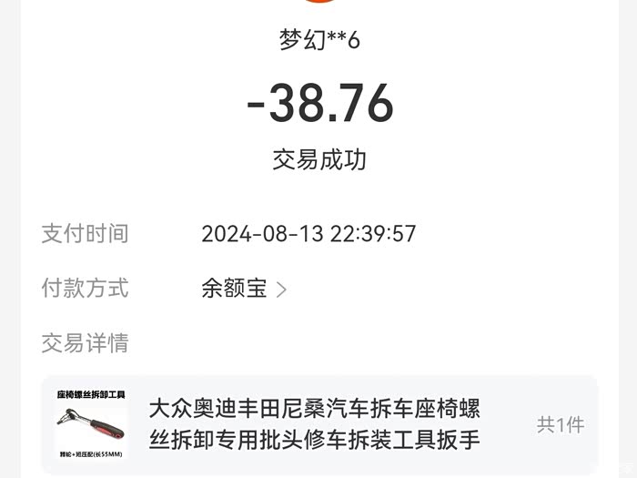 (8)购买工具和配件的费用:今年一共买了一个专用扳手和一张坐垫,一共花费48.76元。