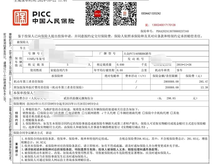 (2)保险费:我的车是上人保的车险,保费比较高,但是我选的项目比较少,只有强制保险和第三者责任险和医保外用药。所以花费不多。今年出了险,没有优惠了。一共1548.85元。比起前几年多花了三百块,也就是优惠的费用。
