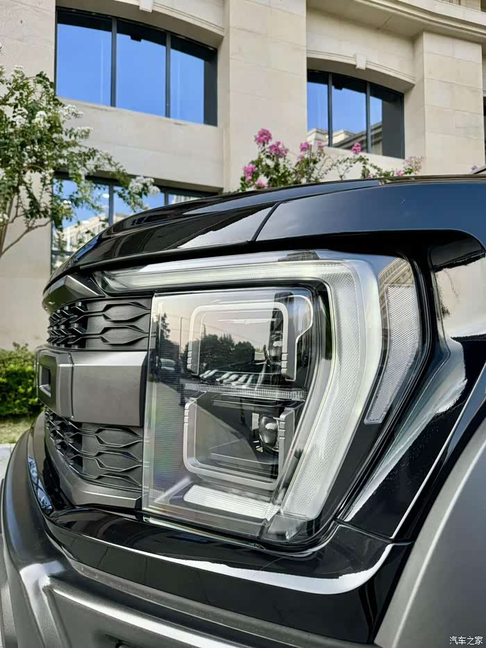 福特勇猛者猛禽版在外观设计上充分展现了其越野与商务的双重属性。车身线条粗犷有力,充满了力量感与动感,彰显出其越野车的本质。前脸部分,宽大的进气格栅与犀利的大灯组相互映衬,形成了强烈的视觉冲击力,同时也提升了车辆的辨识度。车身侧面,平直的腰线从前翼子板一直延伸到后尾灯,不仅拉伸了车辆的视觉长度,还增添了车辆的稳重感。车尾部分,双边共两出的排气布局以及独特的尾灯设计,进一步强化了整车的运动气息。