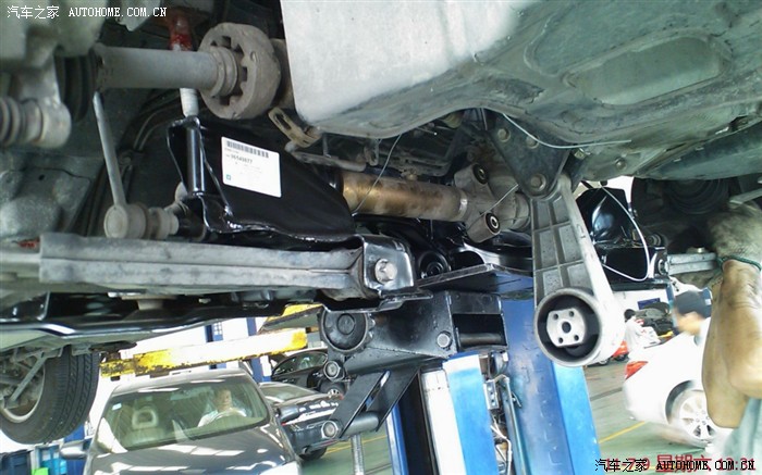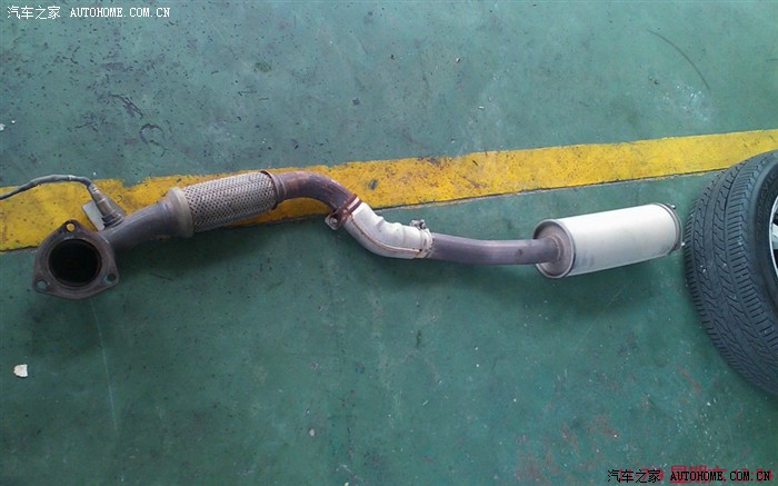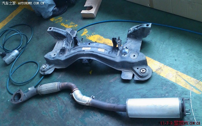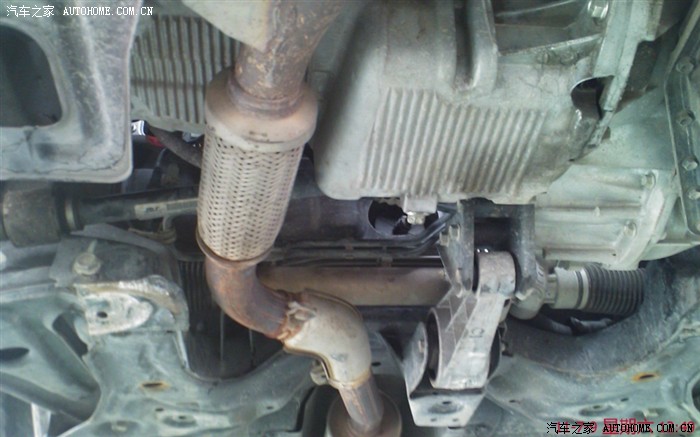 拆掉排气管前段后的底盘局部图(左后轮的下方位置的那辆车也是新凯越,撞得真惨,我都隔了一周了,看它还在那待着。)