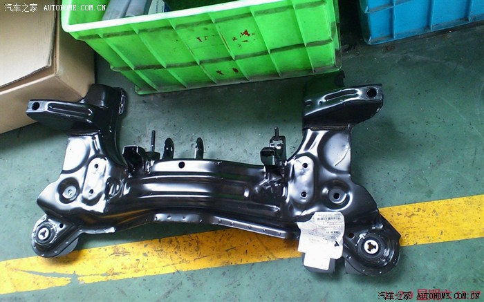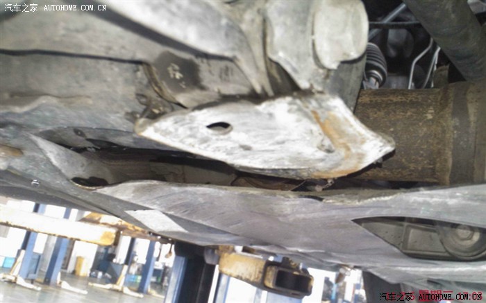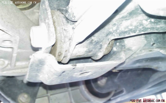 验伤:第二天就到4S,抬起来后发现发动机护板被撞得变形,与发动机贴到一起,所以才会那么响,干脆拆了不要了,再查,发现副梁右前方跟轮胎连接的摇臂处被撞瘪了(下面有图),方向一拉就咯吱响,还有排气管的前段有一处也瘪了,4S的兄弟告诉我说最好将副梁换了,防止一些硬伤看不到,成隐患,可以走保险,觉得有道理,便决定用一次保险。
