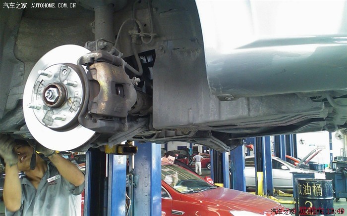刹车卡钳抬起来后,两片刹车看得清楚点了吧,呵呵,现在已买好博世的了,随时可以换上。