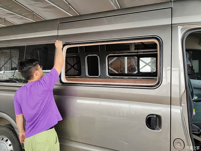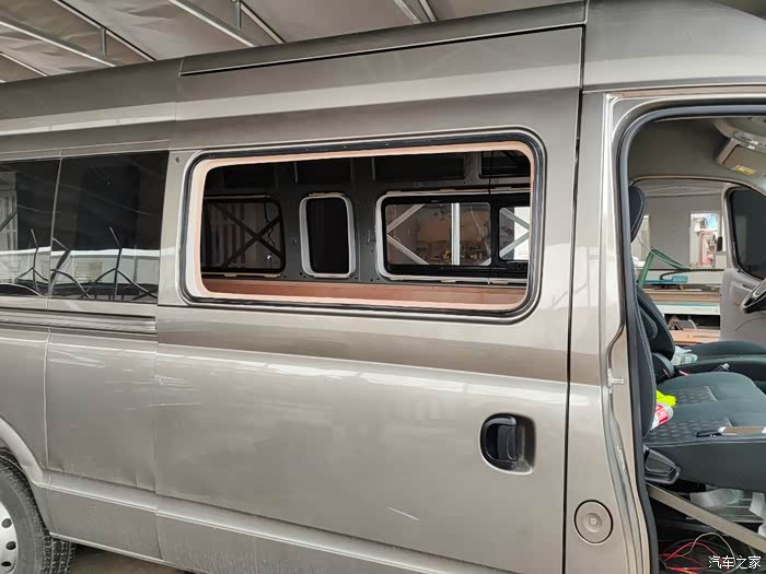 为了能到时在车内闻到新鲜的鸟语花香,把中门左右二侧的原车封闭式玻璃窗改成前后推拉式移动玻璃窗。