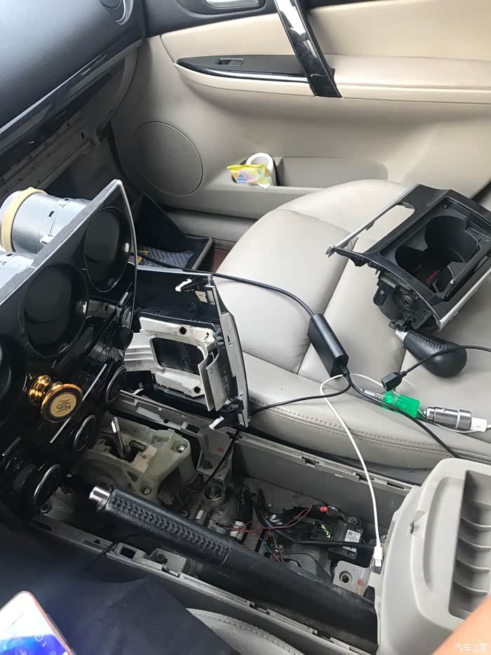 。车子有轻微抖动就决定更换一对机脚换了之后还是有点轻微抖动、忙里忙外弄了几天换了东西问题还是没有解决、这可让我很头疼、我这人还有强迫症。另外更换AUx音频线,车子接回来CD被换成单碟CD的机子了,即使是6碟我也不喜欢用CD听歌,因为碟片没有自己喜欢听的,最终决定加Aux音频线、话不多说上图、