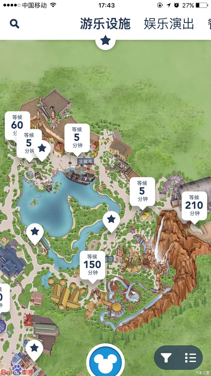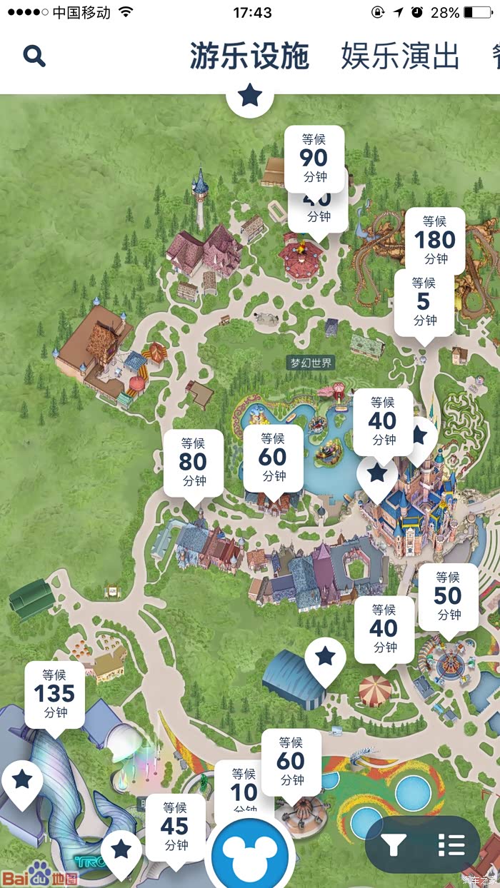 虽然下着雨,虽然是晚上,但是游客还是没见少,各个游乐项目都是排队超级多,发几张下午通过APP查看的结果