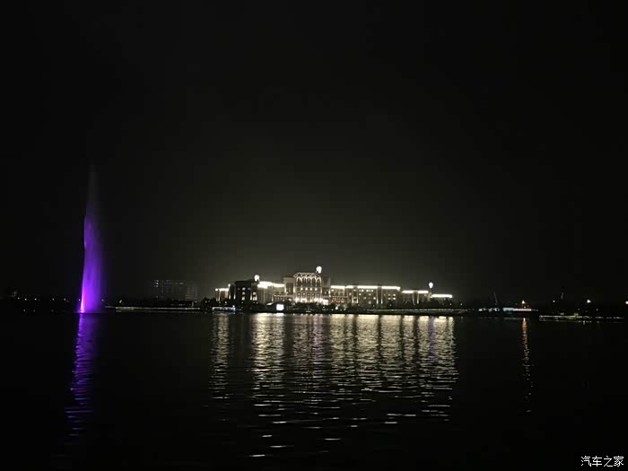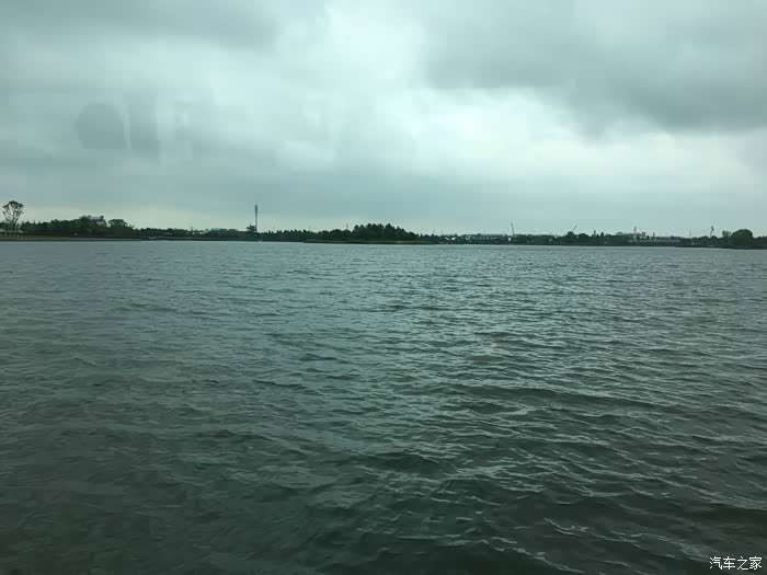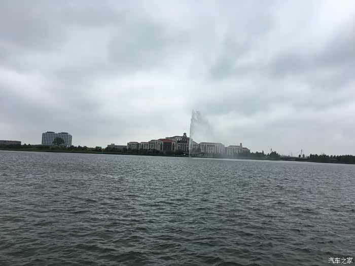 船上随拍,雨越下越大,湖中央有个很大的喷泉,晚上还要变换灯光很漂亮