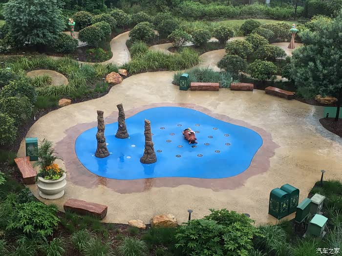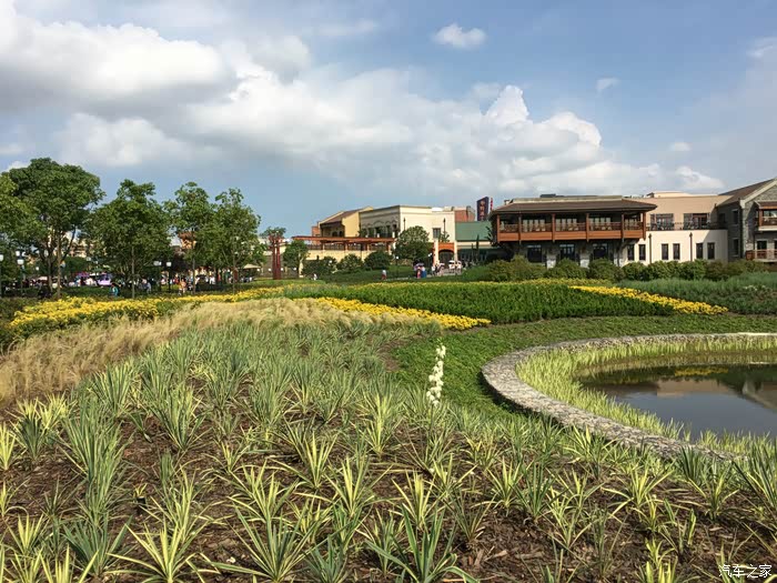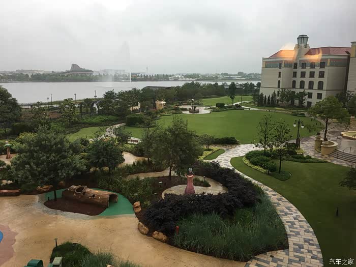 由于是下午三点才能办理入住,只好寄存行李后就开始进去园区玩了,酒店花园很精致很漂亮,远远就能望到迪士尼城堡