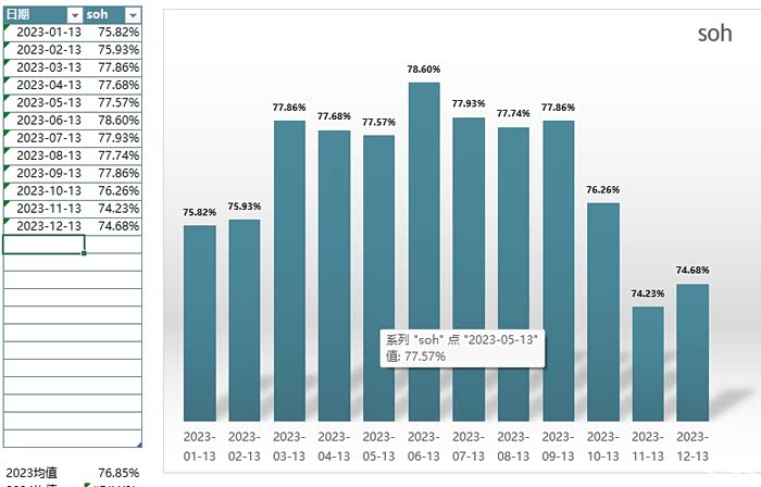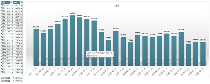 近几年改变了驾驶习惯,和踩棉花彻底告别了,但80%充电还继续执行,不过由于电池衰减,80%不够用的场景越来越多,冬天会经常用到100%充电。soh的统计数据如下图所示,近三年的soh年下降幅度稳定在2.5%左右,按照这个速度,用到10年以上绝对没有问题,后续如果衰减速度继续降低,说不定可以用到15年。
