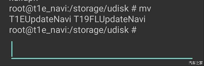 此图是我在/storage/udisk目录把将“T1EUpdateNavi”文件夹修改成了“T19FLUpdateNavi”。当然你在电脑端直接修改也可以。