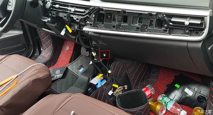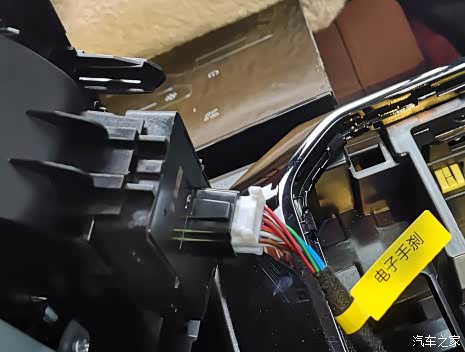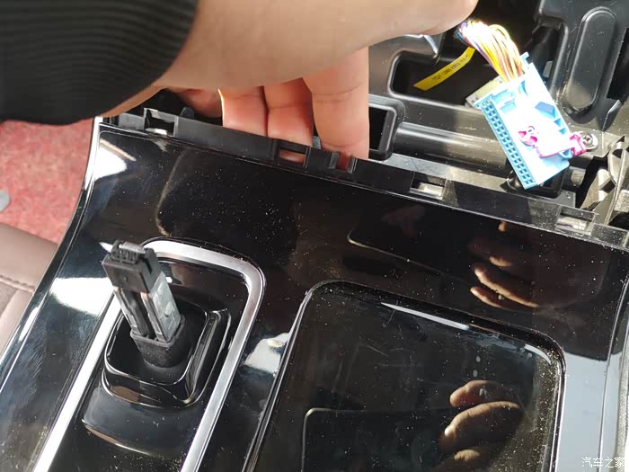 在图片位置入手,拆开扶手箱面板,直接往上拔即可拔出来,拆掉线束即可,因为有换档线束和电子手刹线束最好做好标记,插错会烧保险。