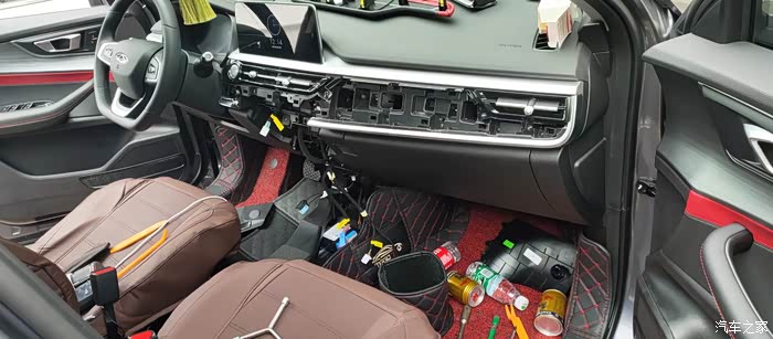 在海鲜市场于是找到专修导航的钟老板,他们家有车联网主机,经过与他沟通后要了二套主机进行测试,分别是瑞虎8和20款瑞虎7的主机。经过几天的等待终于拿到主机,就开拆中控和扶手箱了,以下是拆中控台和扶手箱的步骤,因为拆的时候没有拍照片,照片也是在回装的过程补拍的各位将就看了。