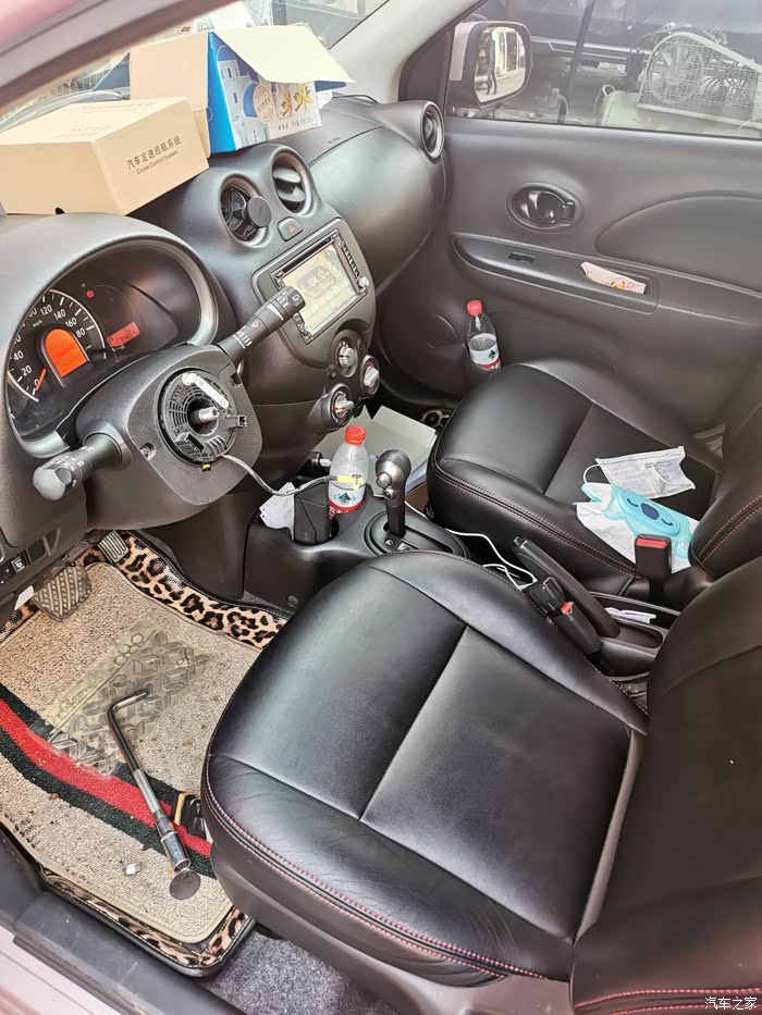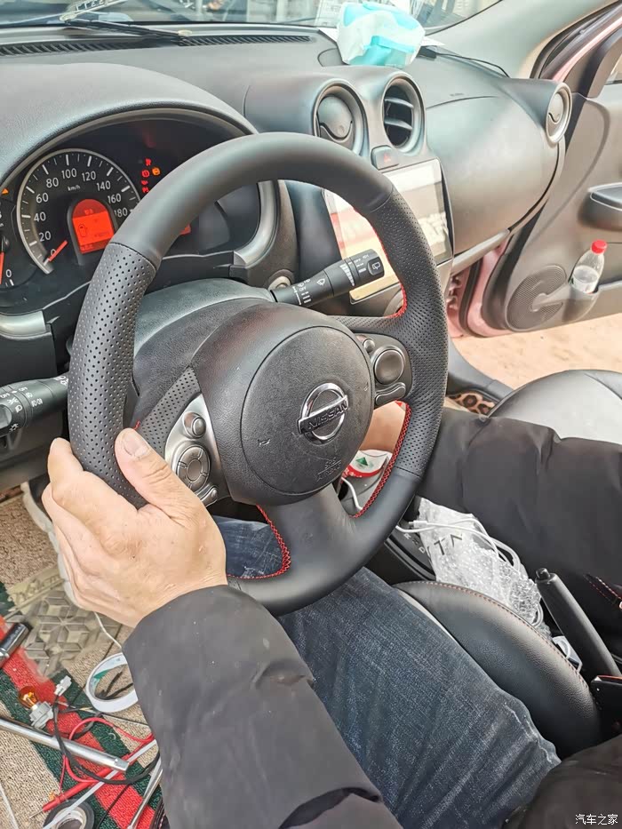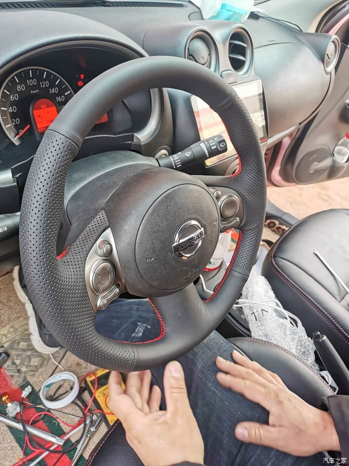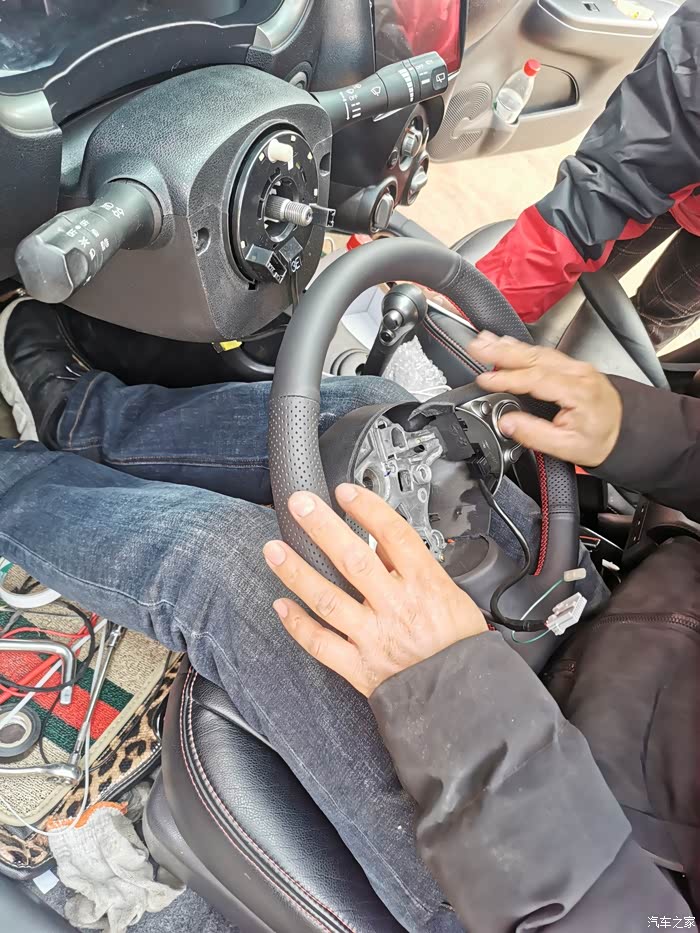 方向盘拆掉了,此时还没更换大屏,拆掉缝个方向盘套。
