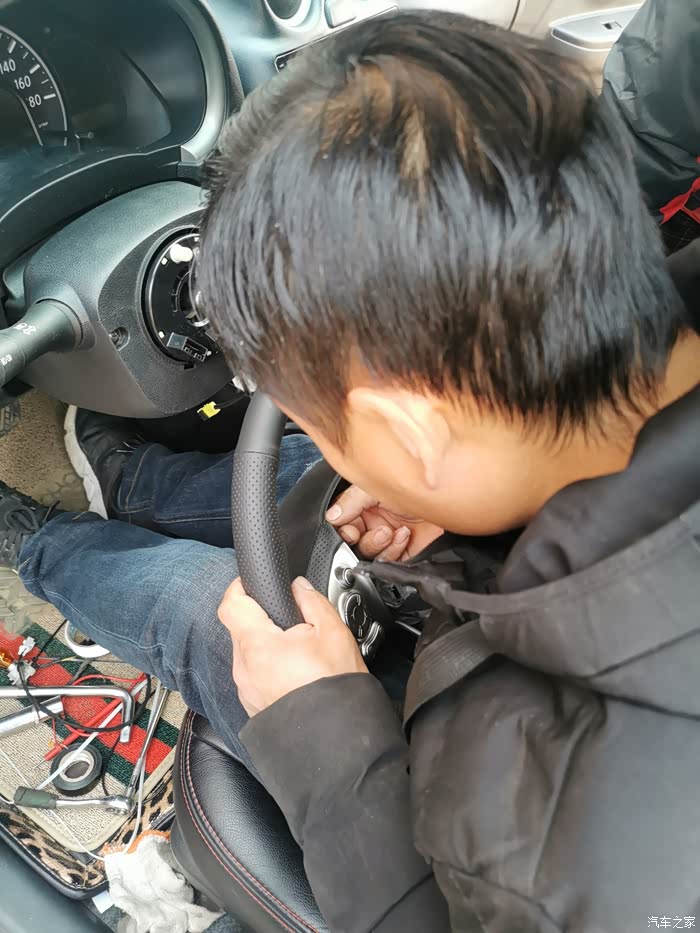 师傅在装多功能按键,还有定速巡航。