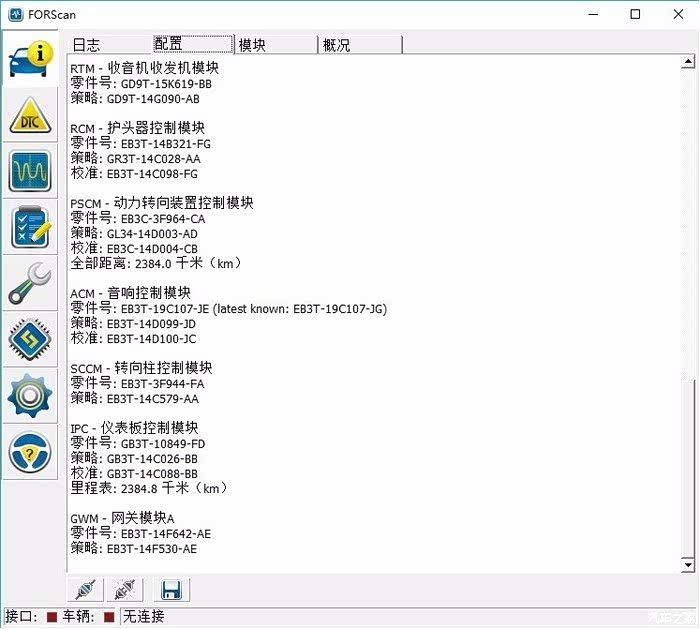 扫描到的车辆配置信息