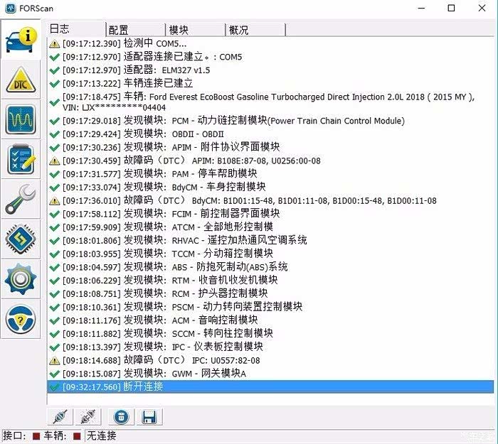 豪华版扫描到的车辆模块,HSCAN和MSCAN下面有不同的模块,所以,刷机一定要购买带协议转换开关的ELM327接口