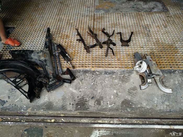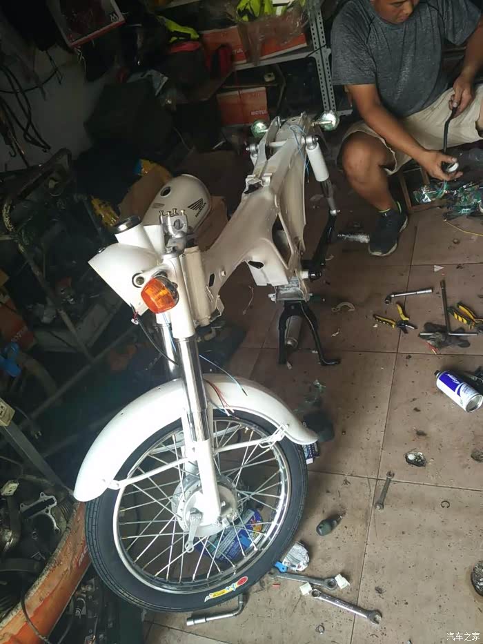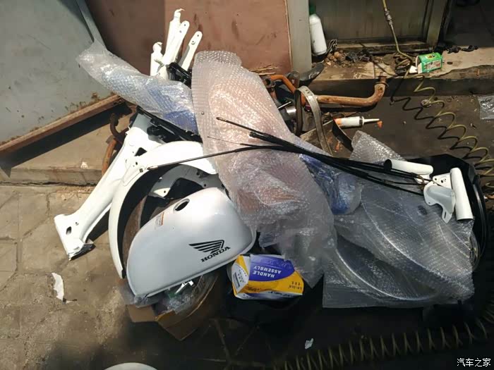 因为我自己动手能力很差,所以所有的事都是找别人来做的,这是在一家改装店,把原车给拆成了一堆零件
