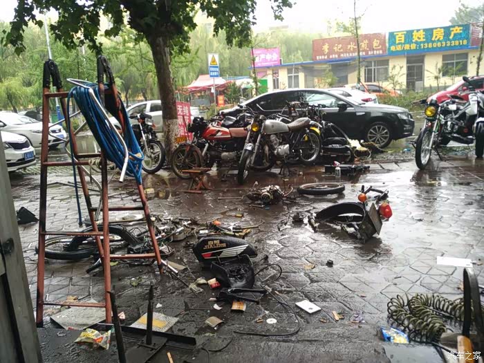 把翻新好的零件和重新买的零件拿到改装店里,就这样堆在门口地上,好像一堆垃圾。
