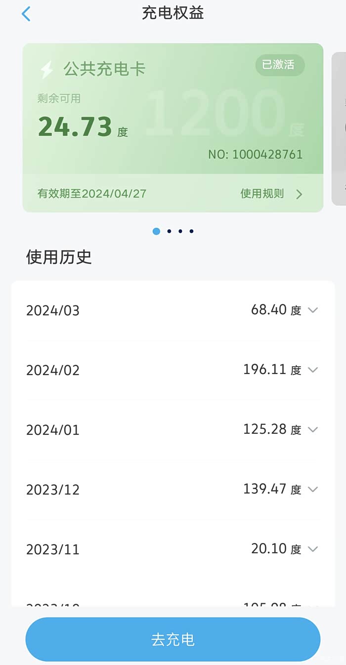 签到与V豆:对于大多数APP来说,都有签到的功能,以此提升APP的活跃度,上汽大众超级APP也提供了这样的功能,每次签到,都会给30V豆,如果遇到重要的时间节点,给的V豆特别多,我最近一次是拿了8888V豆,原因是坚持签到400天。V豆,在APP里面可以说是硬通货,可以购买各种精美的物品,对于电车车主来说,还可以兑换公共充电卡,我现在使用的这张卡,就是用22万V豆兑换的1200度卡,卡的有效期是1年,用了快1年了,目前只剩下24.73度。
