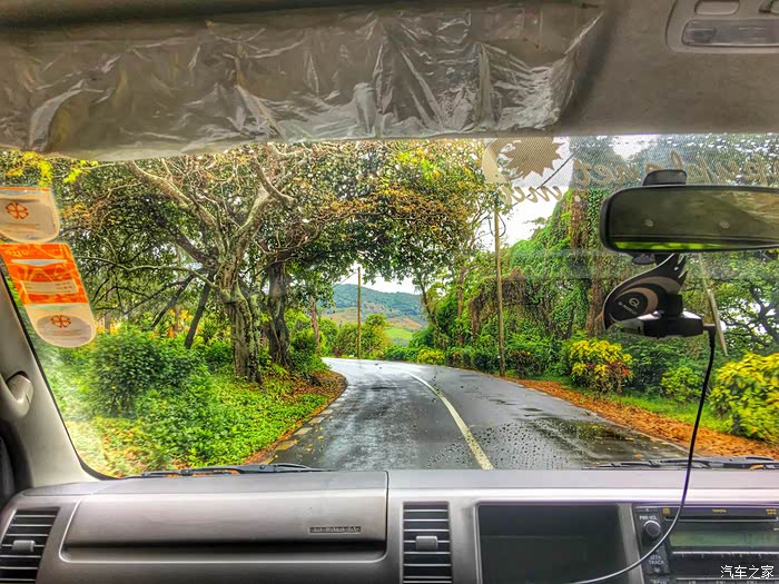 包车去酒店的路上下起了小雨。