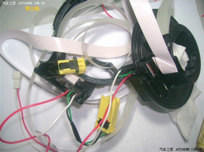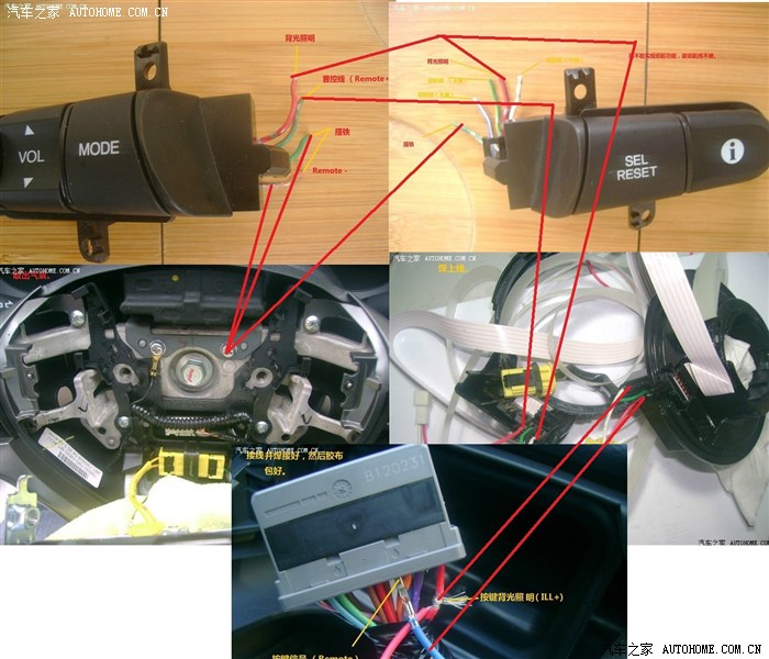 若您使用的是后期加装的导航,请按下图进行改装。本帖不具体讨论后加导航加多功能方向盘的情况。