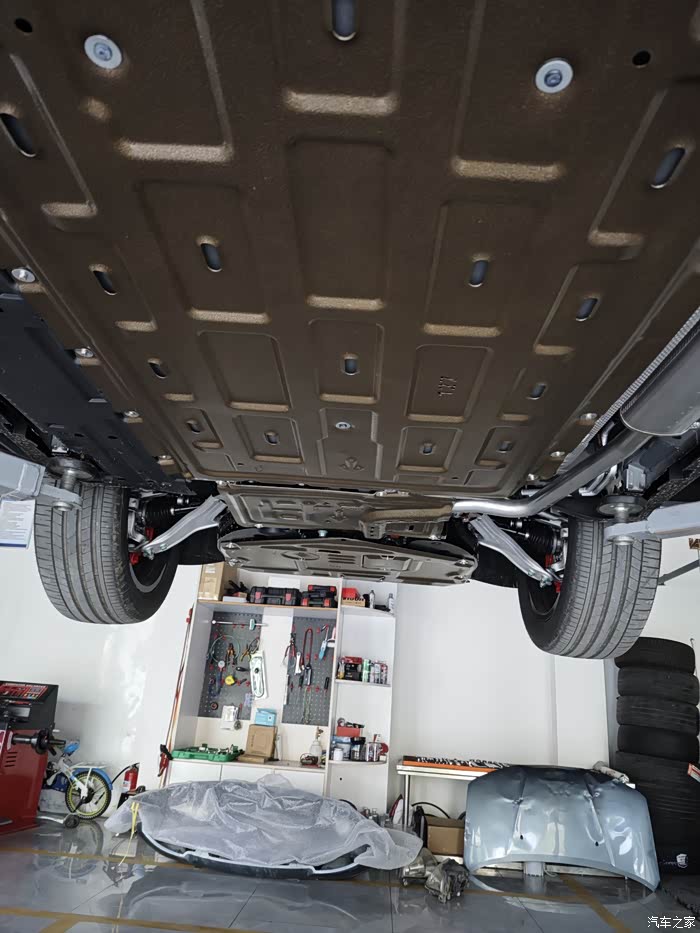 原装电池包护板,老板说是钢板上面喷的什么树脂之类的,反正也不懂,还是护上放心