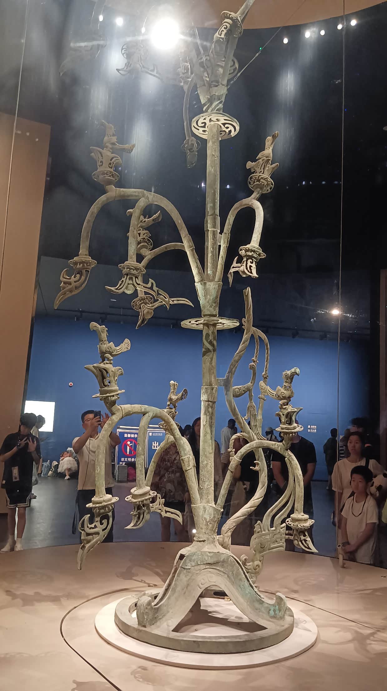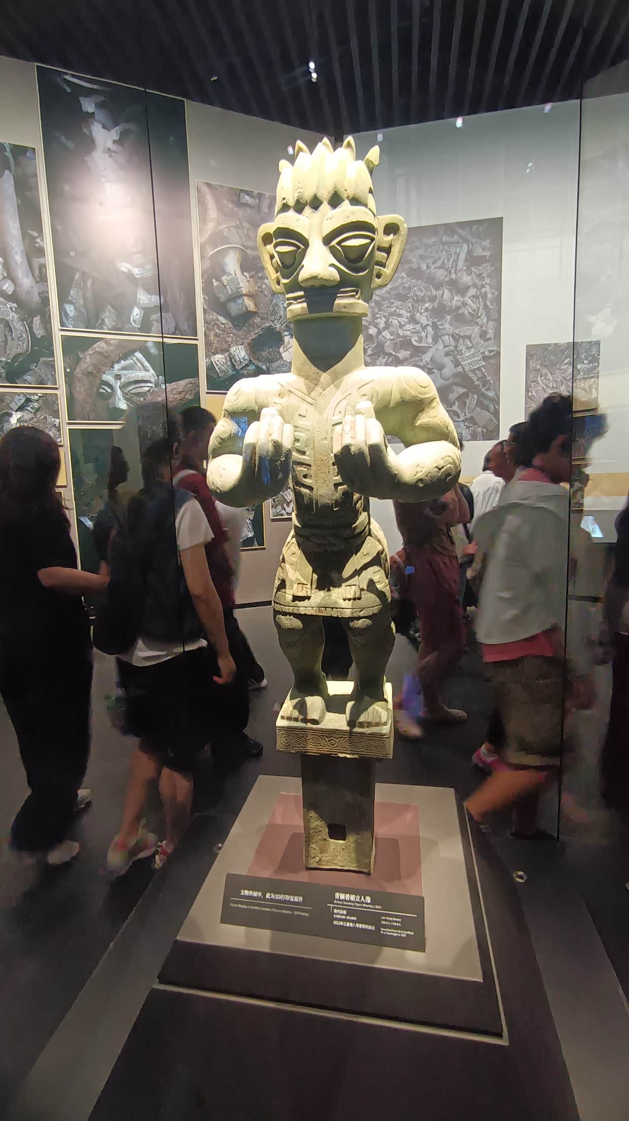 8月26日:享受了酒店的免费早餐,出发去三星堆博物馆参观。停好了车,到了博物馆大门,显示屏显示说当日已无票,无奈就想上前询问,旁边的保安同志见我就问有什么事,我就问到这票怎样才能定到。保安说:60岁以上的老人不用买票,凭身份证就可以进。太好了!拿着身份证进入,当在检查口检查背包时说有小刀和水壶,把水果刀和行军壶拿出来,水壶的水还是烫的,检查人员烫着了,我喝了口水,就放我们进了。这人太多了,与我在三月份来时的安靜比差太多。参观中不得不感叹,古人的智慧!原想去青城山和乐山,由于炎热的天气,决定不去了,就去峨眉山,中午吃了午饭就出发去峨眉山。下午四点多到达。入住城市便捷酒店也是我在二月二十八游峨眉山入住的酒店。晚餐吃翘脚牛肉,乐山苏稽的特色菜,但还没有苏稽古镇的好吃。看来要吃翘脚牛肉还是到乐山或苏稽古镇吃。晚饭后在周围转了转。