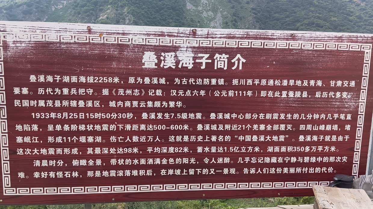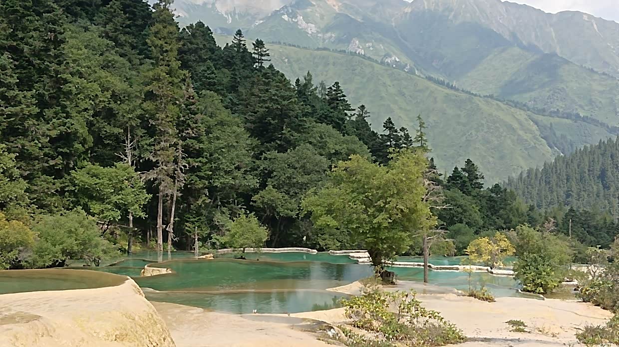 8月23日:吃了酒店提供的免费早餐,出发去黄龙景区。到了景区,六十岁以上免门票,只收缆车费用。排队上缆车用了半个多小时,下了缆车,开始感到有点胸闷,但十来分钟后就正常了。黄龙也就是看溪水流淌的黄色河床,就象条盘绕的一条黄龙。约十二点就下山了,下山后就用车载电源做牛肉面。午餐后,出发向汶川进发。经过叠溪海子时,接到台湾客户朋友的电话,在观景台停车接听电话,原来这朋友一家到了肇庆鼎湖,真不巧我不在家。只好和他视频通话,在视频中见到他的太太和两个儿子。相互祝福后说再见。穿过了好多个隧道。下午五点多到了汶川。入住红军桥大酒店,周未了于是定了住两晚。