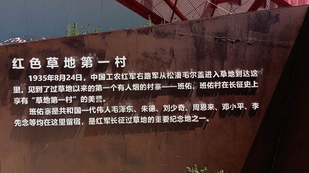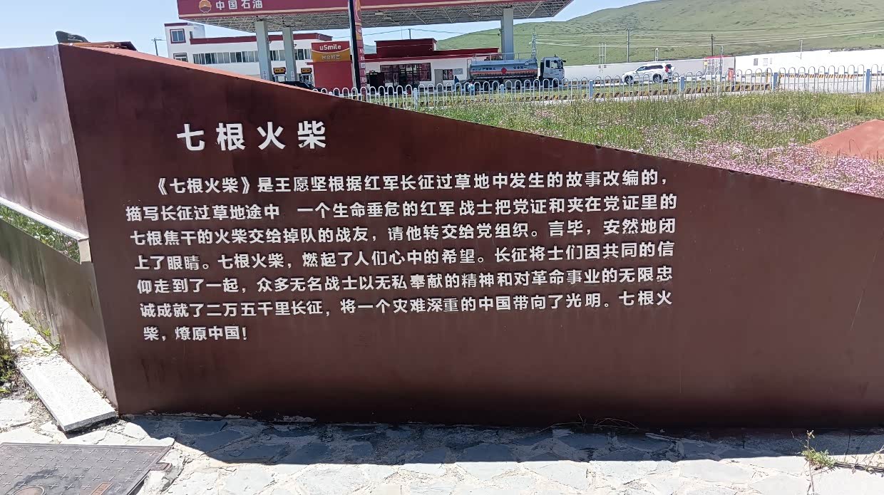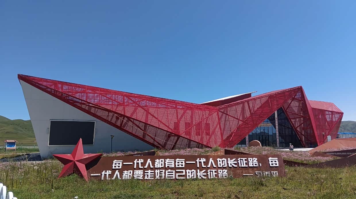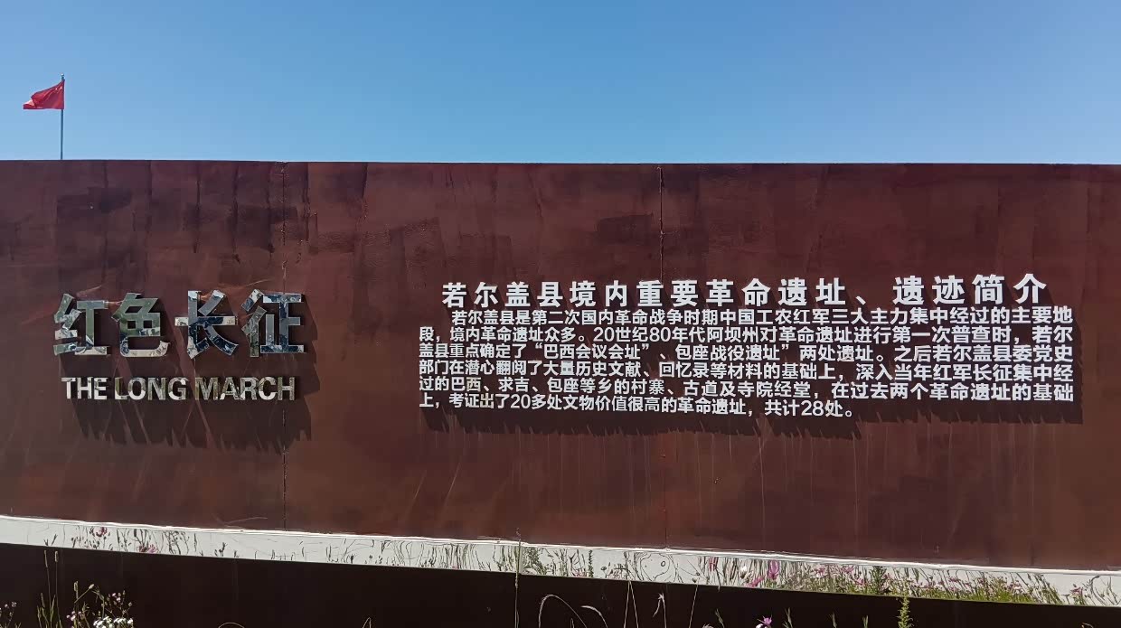 8月22日:早上碌曲好冷,零下一度。穿着厚衣服去看日出,还拍照了当地特色的建筑。因为这一路比较荒凉,所以要准备路上吃的,想买馍,在河这边的镇子里转了一圈竟然没找着有卖馍。无奈吃了早餐就出发了。目标川主寺。路上有好多的大草原,和成群的牛羊,景色优美。尤其是若尔盖大草原,这也就是当年红军过草地的地方,如今成了牛羊成群的美丽大草原。途中经过了几个长征纪念碑,停下车去缅怀老一辈革命者为我们的今日的付出!下午四点到达了川主寺镇。休息了一会,就去参观红军长征纪念馆。完后在镇上买了牛肉和青菜。预定明日去黄龙景区。