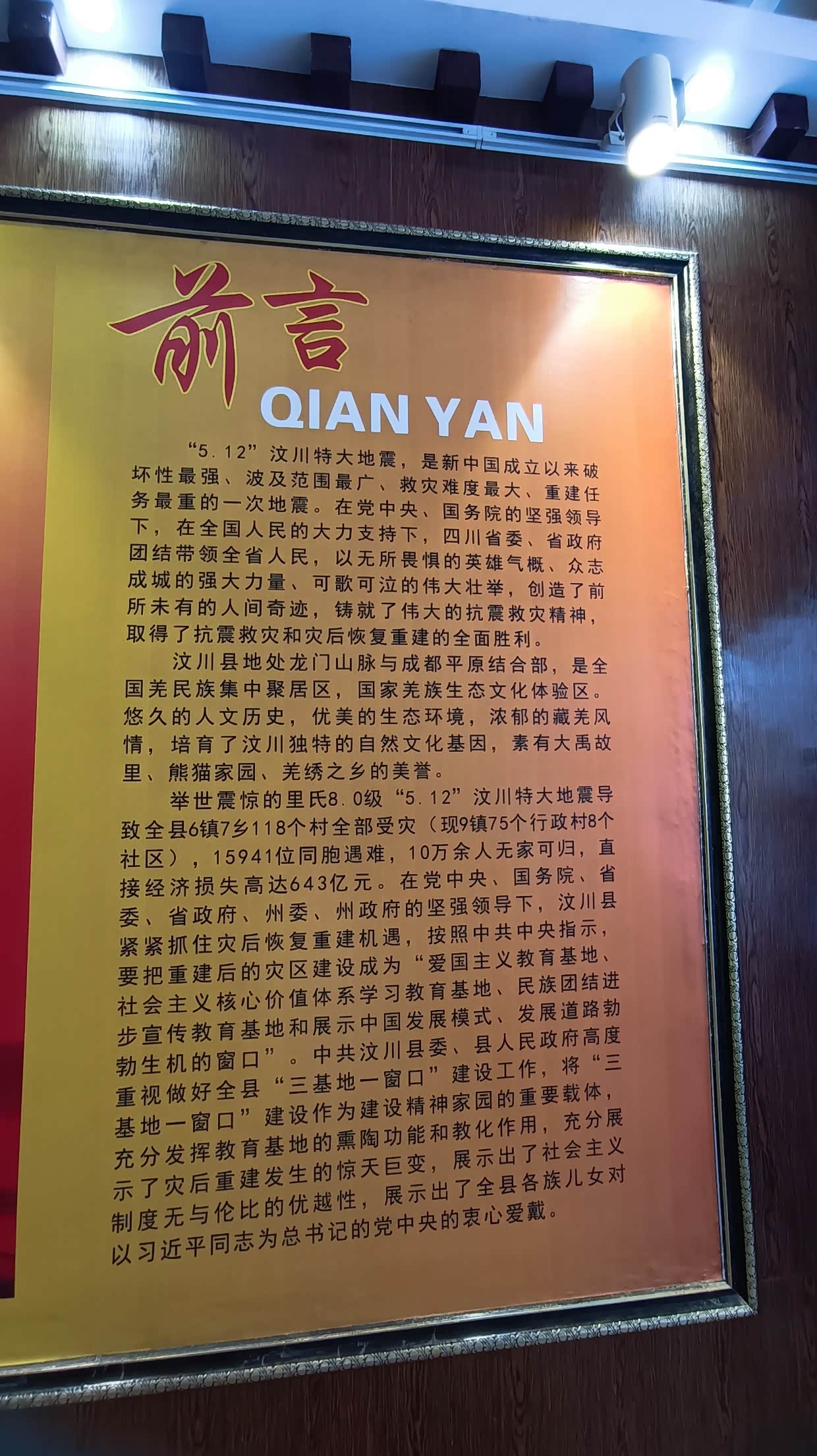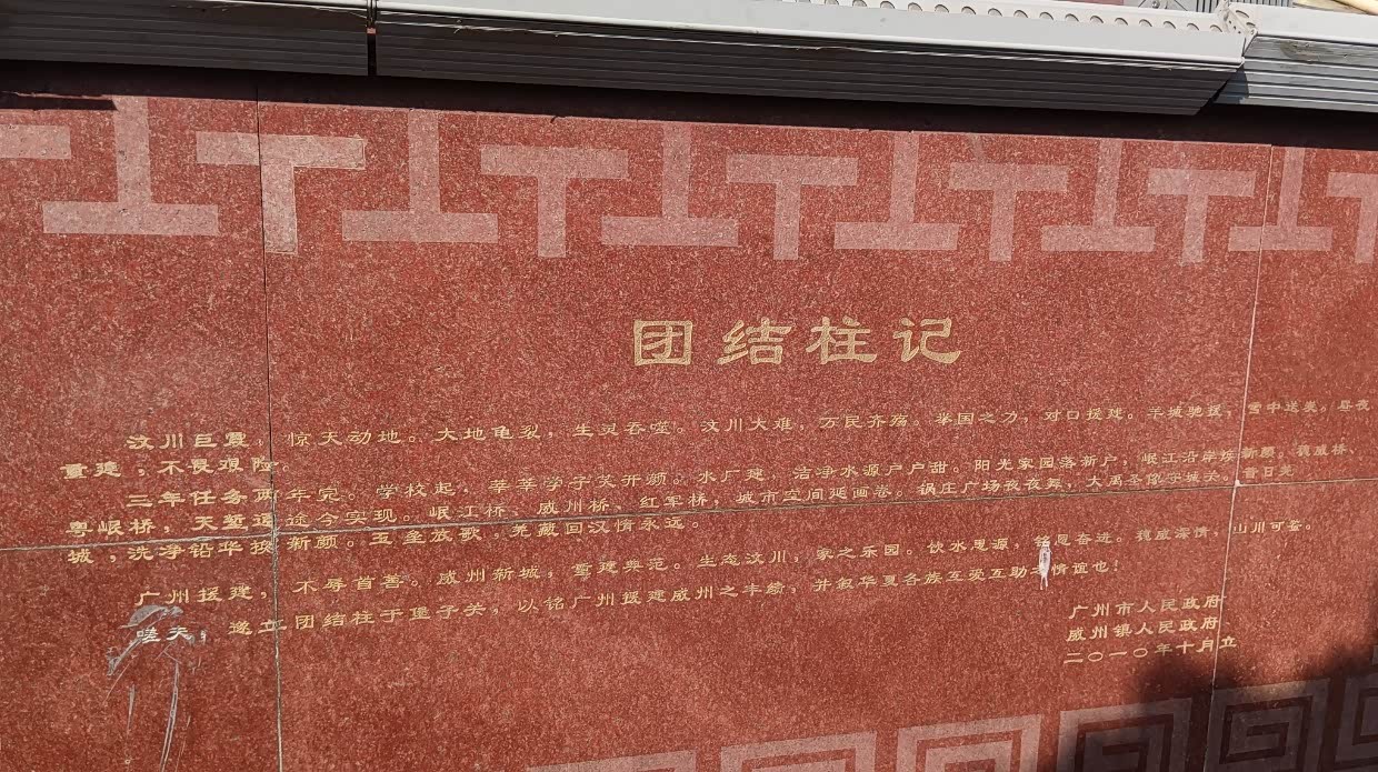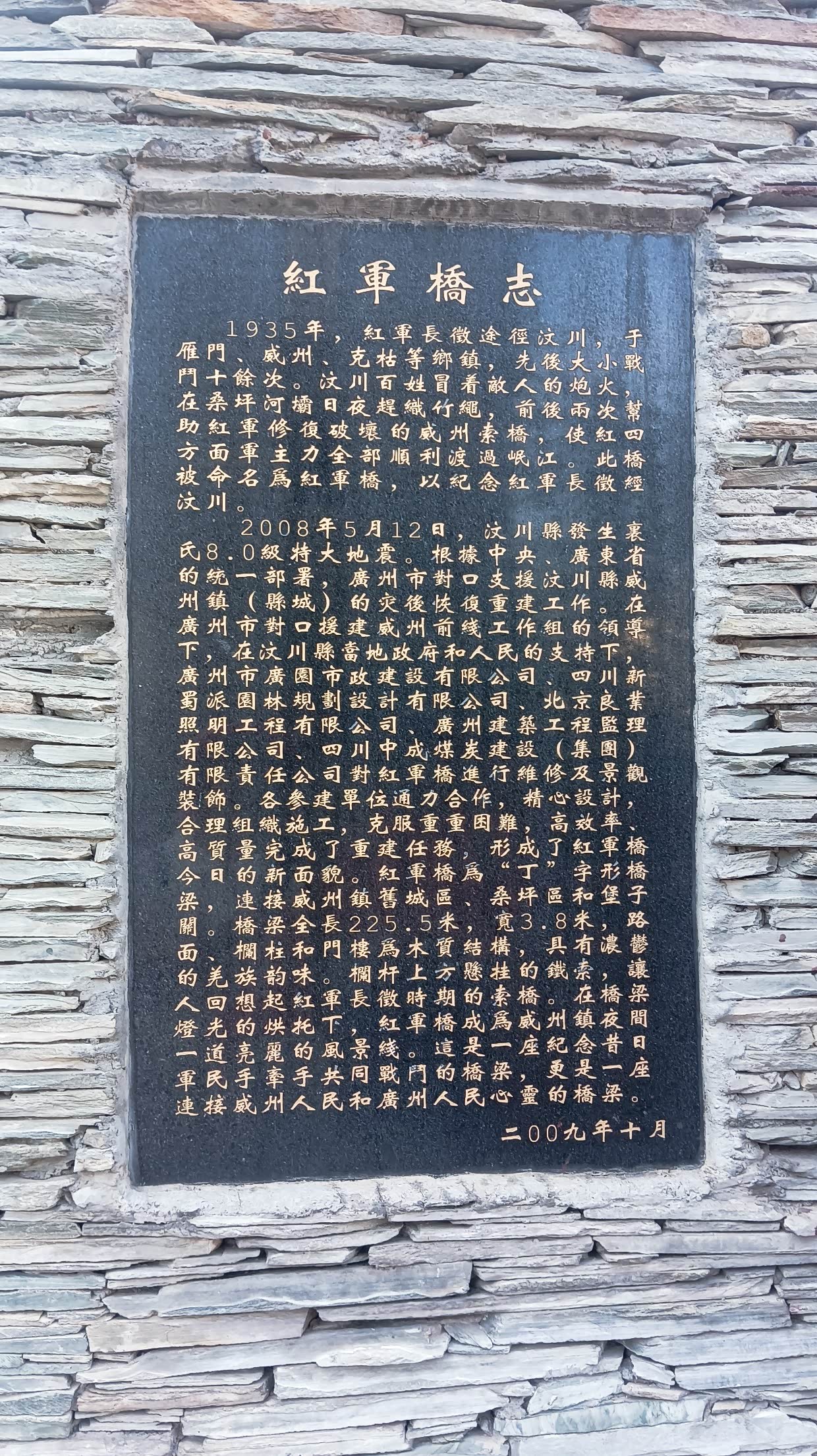 8月24日:早上睡到七点多才醒,少有的。早餐后,爬上了红军桥旁的山上,山上有团结柱和广州亭和威州亭。从山上俯瞰汶川。下山去汶川博物馆,回酒店竟然走错了方向。红军桥在汶川北,我们走到了汶川最南了。回到酒店午休,下午就在楼下的理发店剃了个头,才十元钱。洗了头就去广东援建汶川纪念碑,沿着江边漫步。