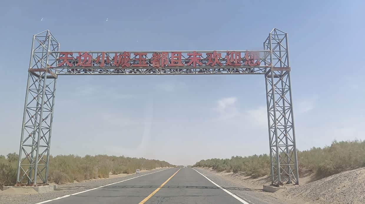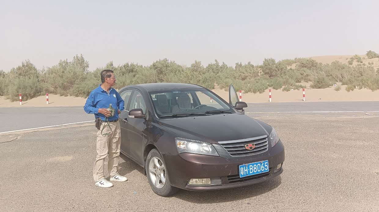 8月14日:早上出发准备走沙漠公路。沙漠公路长586公里,基本上是处于无人区。出发前给车加满油。准备好了吃和饮水。在沙漠公路标志处遇到在和田住同一酒店的江苏人,一起相互帮忙拍照。沙漠公路有近十公里被水冲坏的路段,车只能用很慢的速度前进,过了这烂路,就出现了十来公里的波浪路,那失重感和重力感特别刺激。路经一个古城遗址,转进去,没有开放,封着路口。下午8:40(新疆的晚上十点才黑)才到达轮台县。家里的94岁的老父亲因为没有收到我们平安到达的信息,焦急地打电话询问我们的情况。新疆下午八九点就象广东下午的四五点钟。在新疆感觉正常,但老父亲就担心了。入住轮台明逸酒店。买了牛肉,又是自已做晚餐。