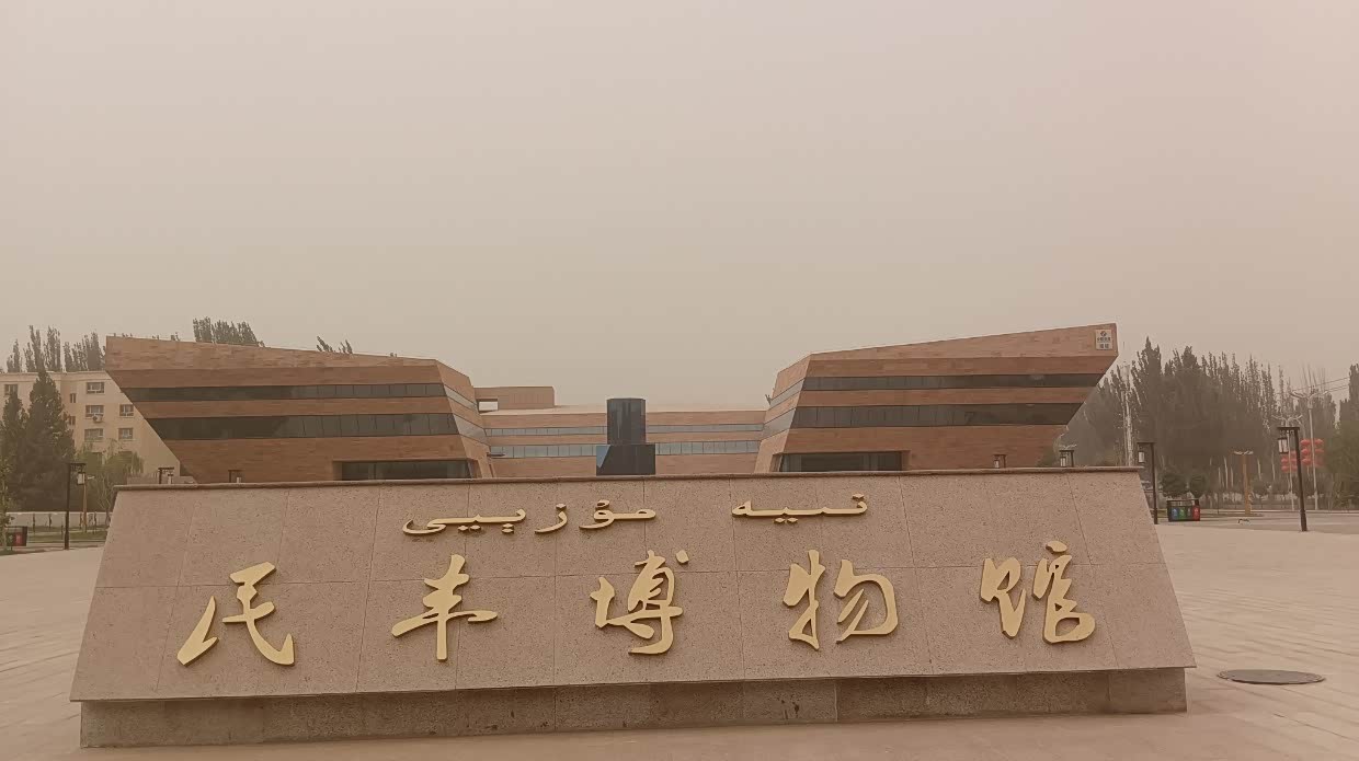 8月13日:吃了酒店的免费早餐,去逛街,由于浮尘而失去兴趣,回到酒店收拾行装准备离开,保安同志和我聊天,说他家那的白桦林玩是免费的,很详细地告诉我在哪, 怎么走!由于聊的投入。竟忘了退房就开车走了,几百米后才发现房卡还中手上,又回去把房卡交前台。那保安同志笑弯了腰!离开了和田前往民丰,下午2:00就到了民丰县绿洲酒店并办理了入住。刚叫了午餐,回到酒店准备午休,就听服务员大喊着:快关好门窗,沙尘暴来了!把门窗关严实了就午休。一个小时后起床,去博物馆参观,下阶就见到我的车上布满了尘土,这对我们来自广东的人来说太可怕了!到了博物馆,博物馆的门关的严实,可进出那门也用厚厚的门帘。博物馆是新建好才开的,还有装修的味道。参观后,在语录塔旁边买了牛肉,晚餐不敢出去吃了,自个做吧!那风沙挺吓人的。广场上好些枣树,结满的枣,但也布满了尘土!