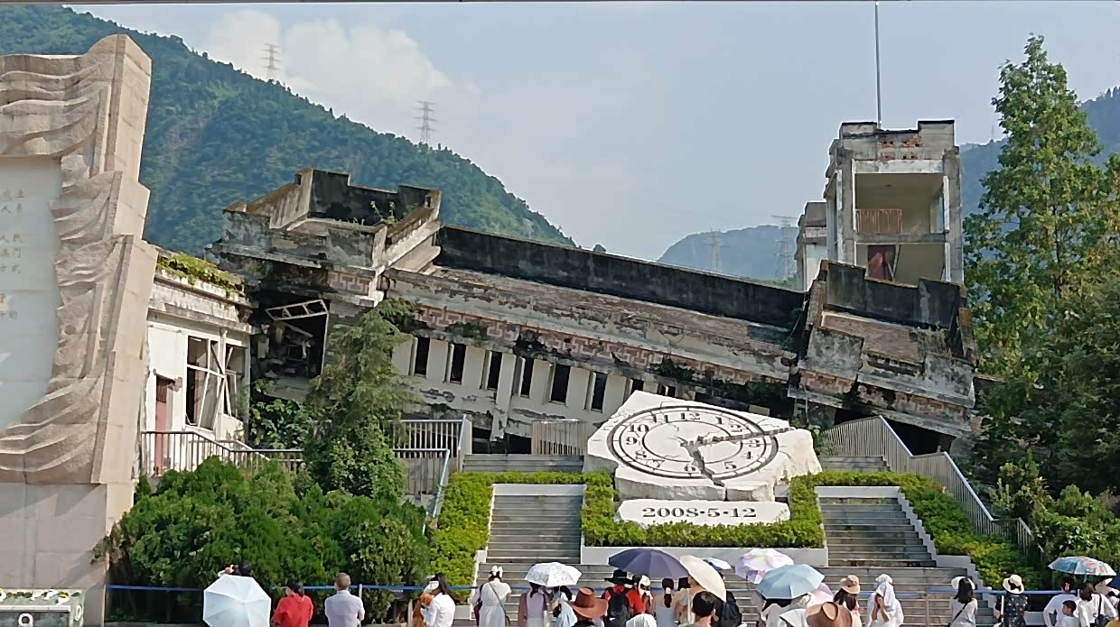 8月25日:一早出发去映秀镇,走到大禹村,停车观景,发现手表忘记拿了,压在枕头下。立刻返回酒店,还好跑的不远,也就是21公里。很快回到酒店,和酒店总台说清情况,立马带我们去房间拿回了手表。老板说如果远就不用赶回来,打个电话就行,给你邮回去,曾经有客人丢了手表就是邮回去的。继续去映秀镇。在路上遇到卖小鹅苗的,一大群可爱的小绒鹅。9:40到达映秀镇,当年地震最严重的地区。参观了映秀镇中学的废墟,感受到大自然的恐怖力量。参观完后,继续向都江堰前进。离接近都江堰时遇到大堵车,堵了大半个小时后,终于到了都江堰景区,在一号停车场停好车。吃了午饭后,进入景区参观。进入成都地区气温明显升高,都江堰景区温度是41度。浏览完后,继续前往广汉市,下雨了,这才感觉好些。入住广汉宾馆。休息了会,去雒城古城,在雒城美食街吃了晚餐,口水鸡、猪头肉、豆芽粉丝、青菜等,才46元。