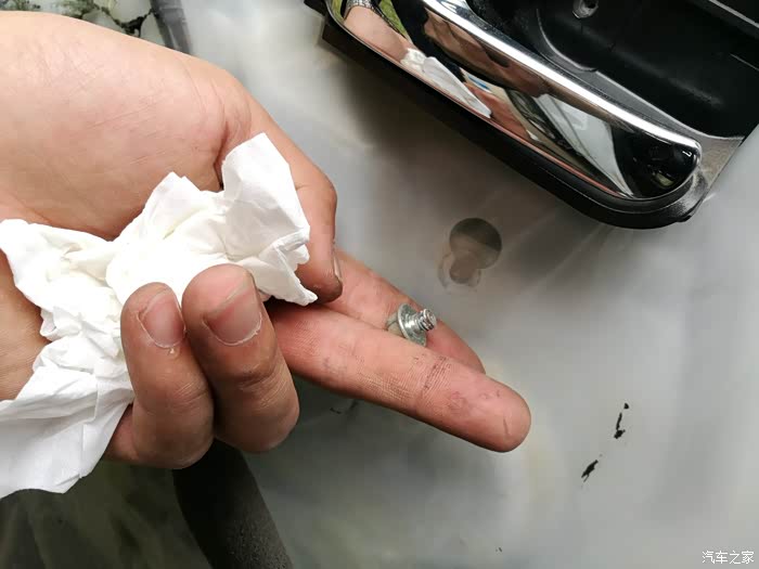 之前被小偷光顾过一次,左后门玻璃破窗,换过一次玻璃,这个升窗器支架的固定螺丝断了一个,应该是维修时用力过度造成的。