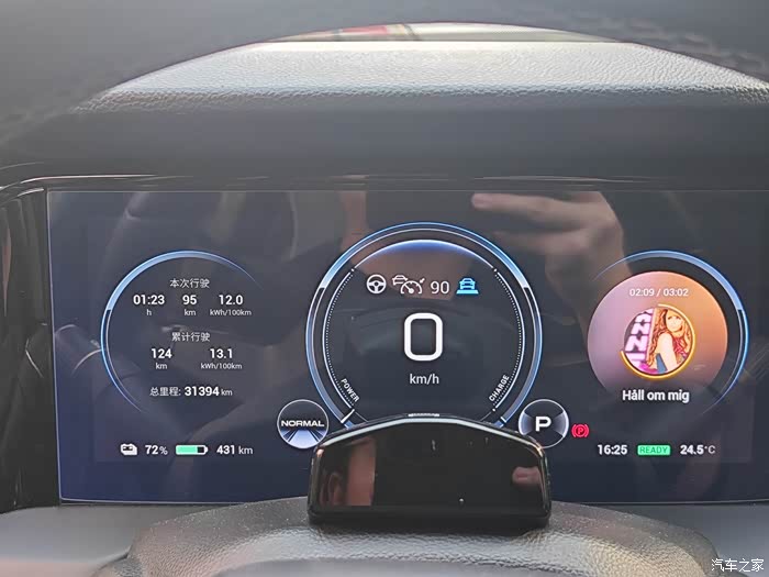 测试从15:00开始,因为是清明节最后一天的下午,行径南四环的时候,中间有一段正好赶上回程的车潮,速度只能跑60-70。过了这一段以后,就一路按定速跑了,顺便开启辅助驾驶(巡航+车道保持)。到下午16:25分回到小区,结束时表显剩余里程:431km,测试结束。