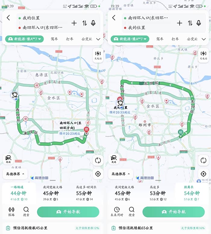 我的车是2021款埃安Splus,80科技版,602公里续航的版本。因为我家就在郑州西四环边上,所以本次测试路线,我选择了郑州市大四环快速路作为测试路线。这条路线全长约100公里,可以比较真实地反映我们在日常驾驶中会遇到的路况。