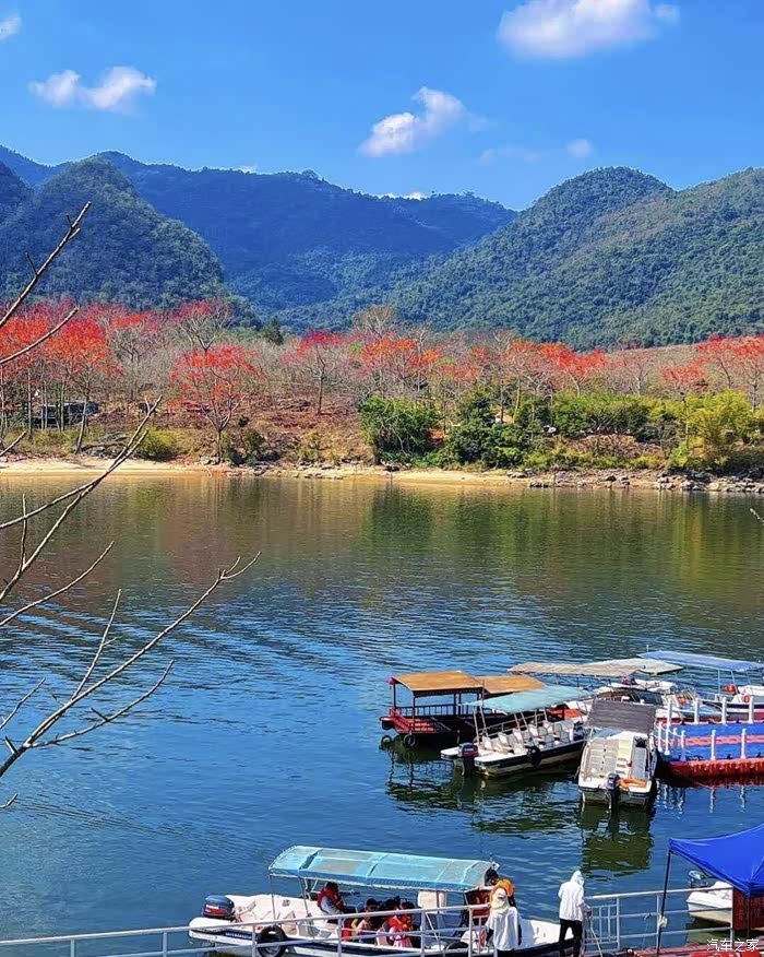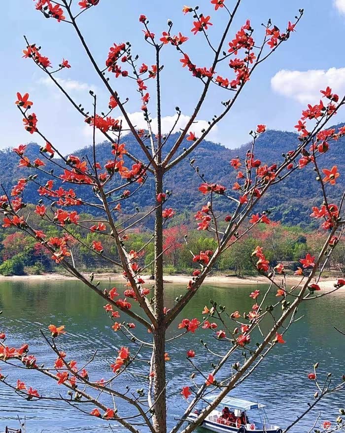 借着春天来临的名义,和喜欢的人一起去看花开吧。春天正浓,海岛一片春意盎然,各种树木、鲜花争相开放,与最美的姿势迎接着春天的到来。赏花、游山、玩水正当时,花与山,花与水,构筑了一幅又一幅优美的画卷。木棉花,花色最艳,是春天里红红火火的代表,在冬天落尽了叶子的枝头上,一朵朵,一簇簇,向着明媚的阳光,尽情的舒展,欢快的绽放,欲与天空试比高,欲与蓝天比艳丽。木棉树,长在山头,长在水畔,长在田边,它都能安营扎寨,与自然和谐相处。看木棉花,到昌化江,这里是木棉花的海洋,花入海、花入江、花如锦、花如缎。一条铁轨伸向远方,有木棉花相伴,相信奔驰而过的列车,也能承载着这里的木棉花向远方客人的问候。近处的梯田,一片绿油油,远处的山峦,在朦胧间,木棉树晒落在田间的小路边,或长在山脚里,视野所。到之处,皆是美景。春天是美好的季节,踏春游山看木棉,令人陶醉。