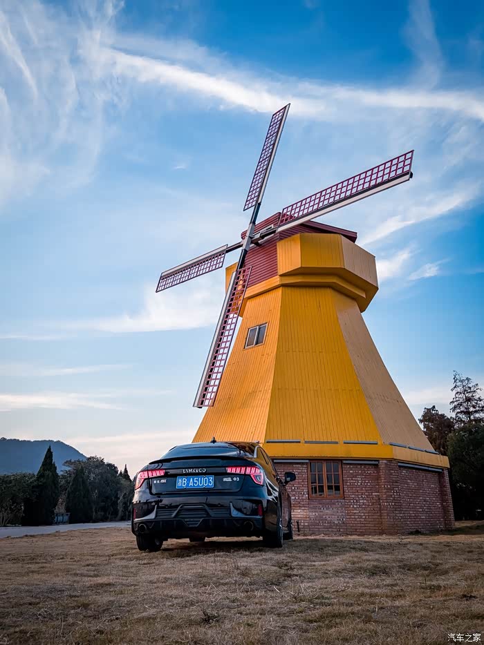 不过还真别说自从开上领克,发现美的能力提升了不少。先在远处来一张合影,黑色的领克03配合着远处透净湛蓝的天空,静静地停在风车脚下,颇为优雅从容。