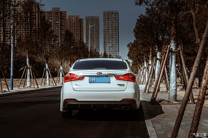 侧面的的颜值来自于17寸的花瓣轮毂,相对于现代的车型,起亚显得运动感多一些。