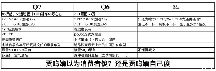 下面,做了个表,请大家看看,请上汽奥迪的销售们看看,还有什么可以补充吗?