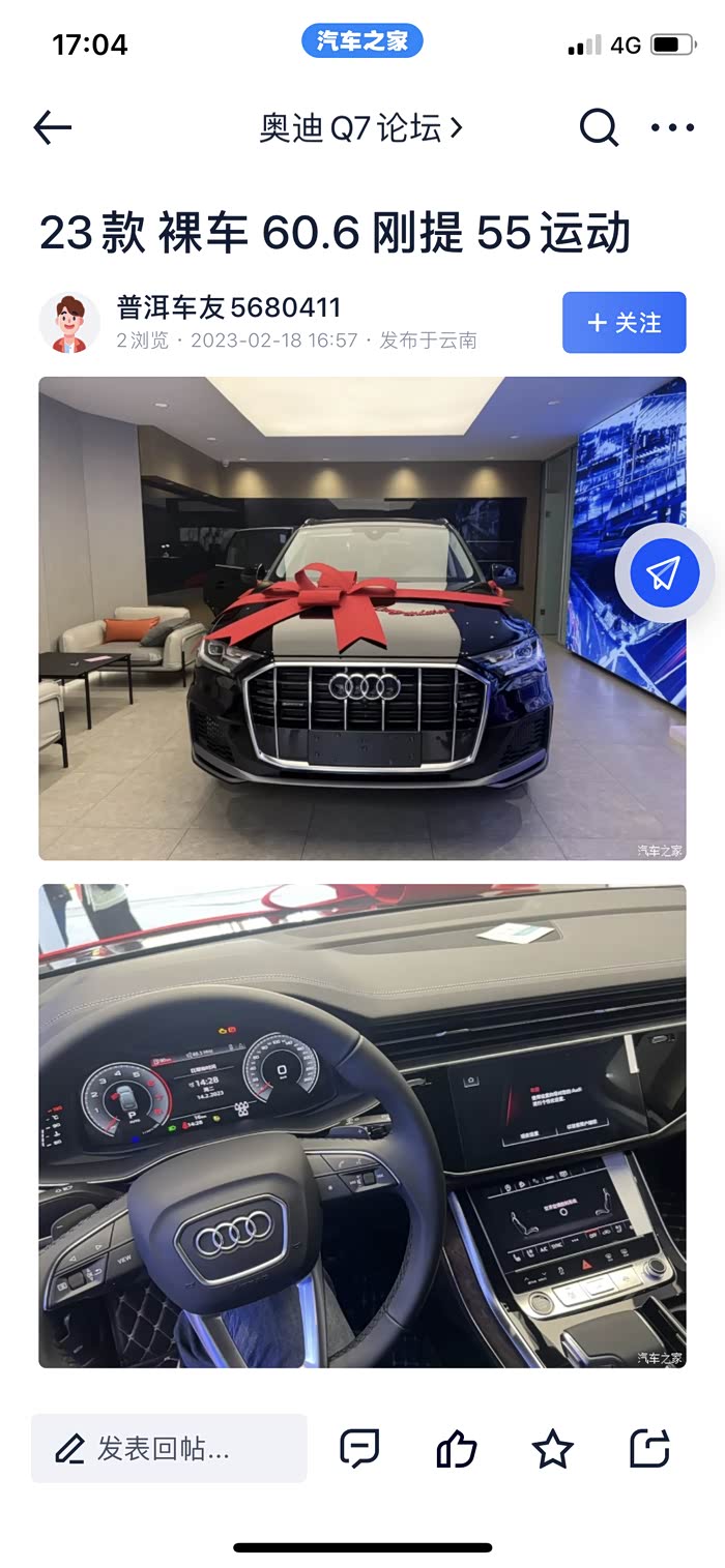 作为途昂2.5T V6顶配车主,本来想置换Q6 2.5T顶配,预售期间我下了订金,u实车到了第一时间去看实车,试驾车到了第一时间去试驾。