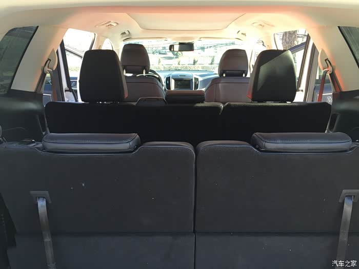 4.空间足够大,这可能是国人对车的一种喜好,到了中国都拉皮哈哈??。虽然是5 2,但是完全能满足家庭的需要,前排就不说了;第二排空间也非常宽裕;第三排不是常用,不过,在第二排向前稍移位一下,坐两个成年人一点问题也没有。