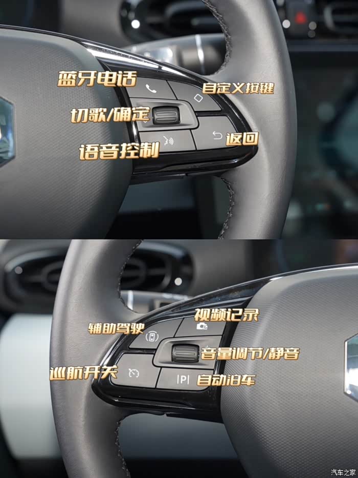 多功能方向盘上有多个按键,包括功蓝牙键、自定义功能键、多媒体键音乐键、语音键、返回键、一键抓拍键、辅助驾驶键、音量键、巡航键自动泊车键喇叭键使我们在驾驶更加便捷和安全。详细可以搜索我的文章(解锁篇丨新手必看T03方向盘十大功能)。
