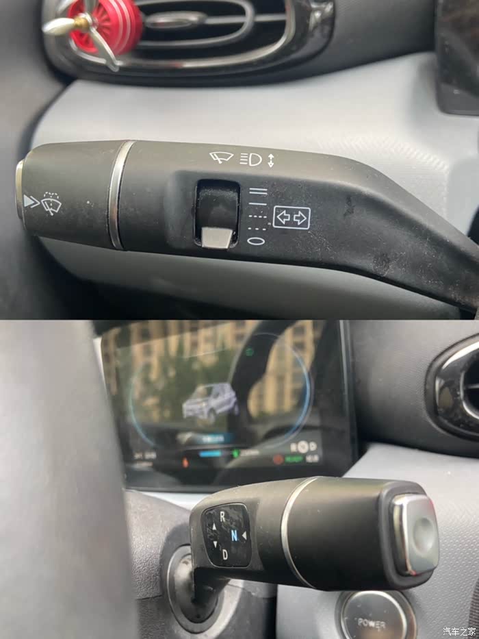 在方向盘的左边是雨刮,雨刷档位调节和喷玻璃水功能,让你在不同天气情况下保持良好视线。在车辆通电状态下,拨动雨刮上、下开启左、右转向灯。远光灯:在近光灯开启状态下,如箭头所示向远离方向盘方向向前按压灯光点亮远光灯。超车灯:向靠近方向盘向后按压灯光,远光灯开起松手后控制杆自动回位,远光灯熄灭。通过操作远光灯闪烁来提醒其他道路参与者了解我们要的超车的作用。我们的T03采用方向盘右边怀挡设计个人觉得相比传统的换挡方式,怀档换挡更加方便快捷,特别是跟旋钮换挡对比,效果更加明显,对于新手司机更友好。