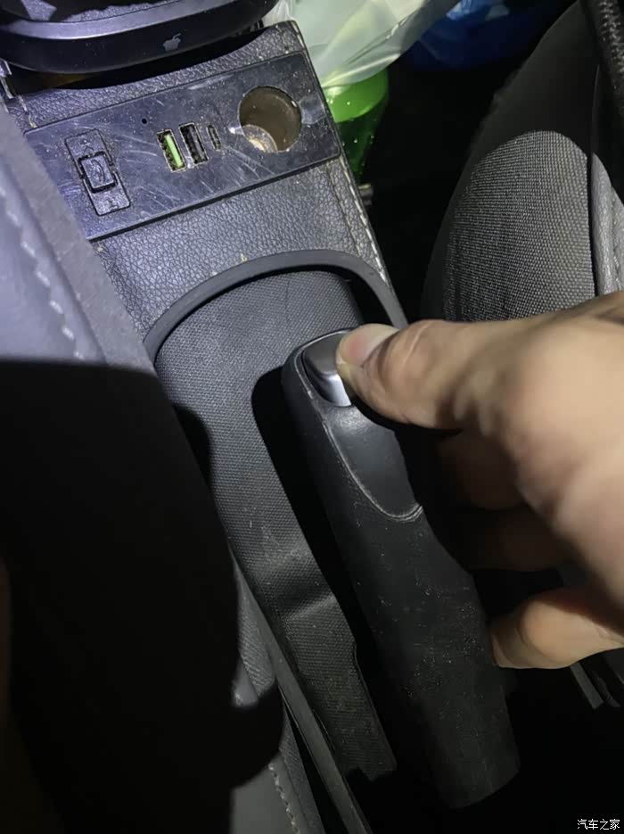 手刹在关闭的时候需按下锁定释放按键,才能放下驻车手柄。