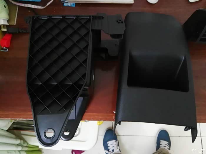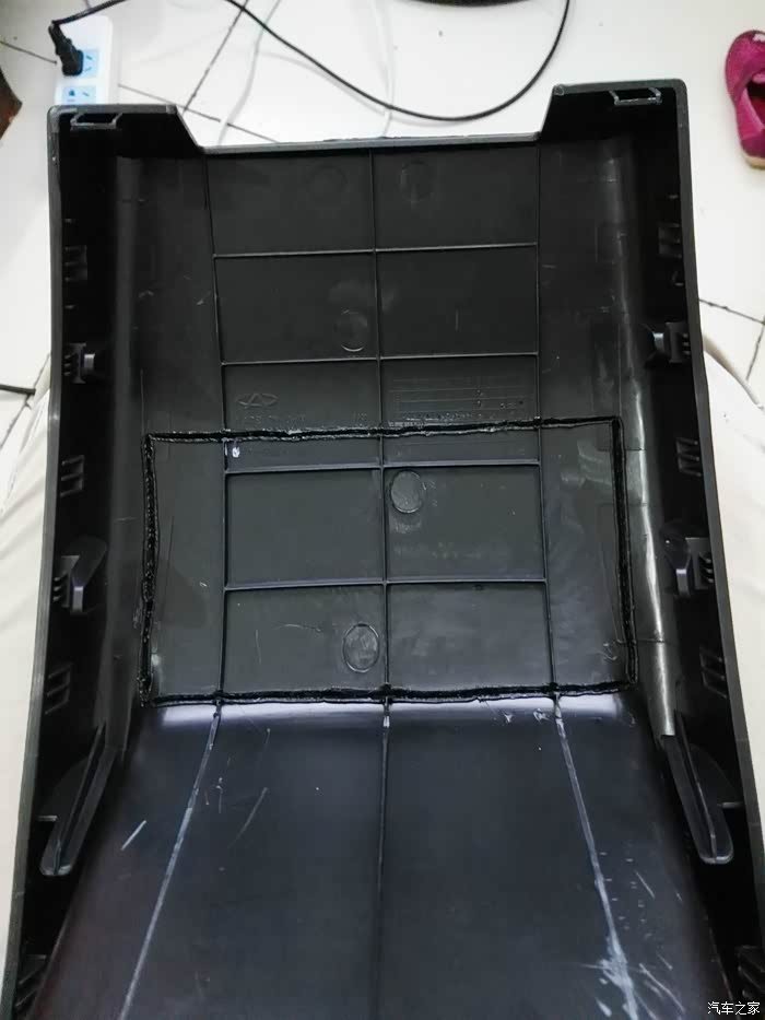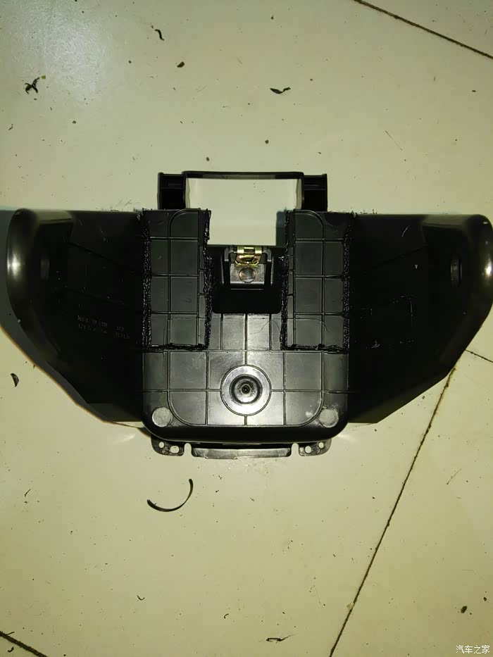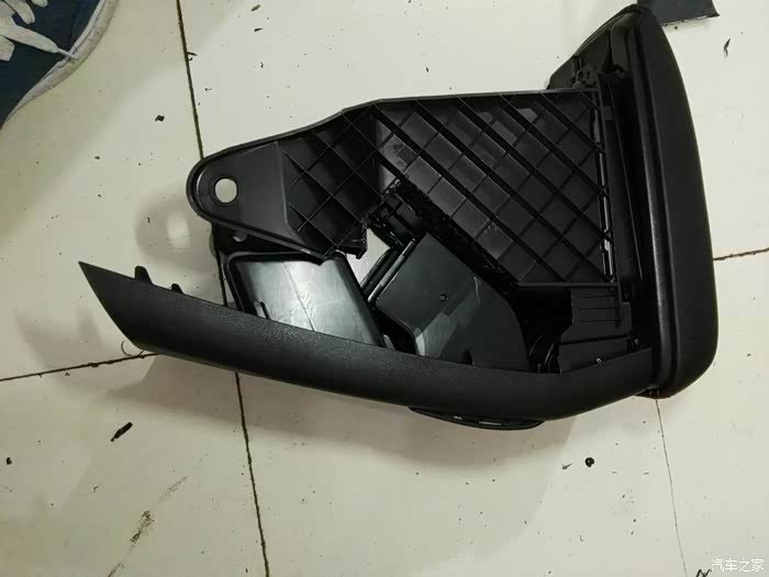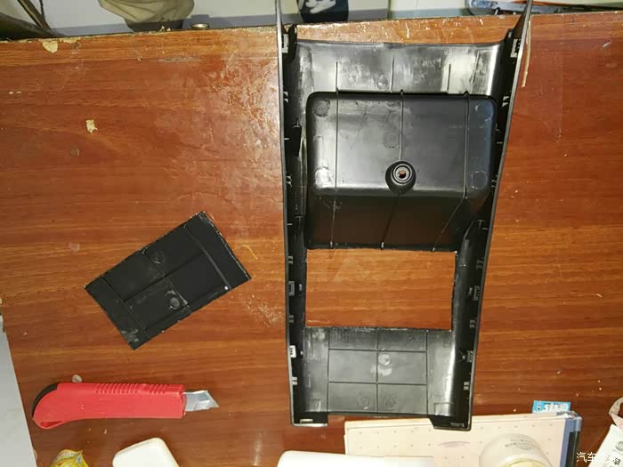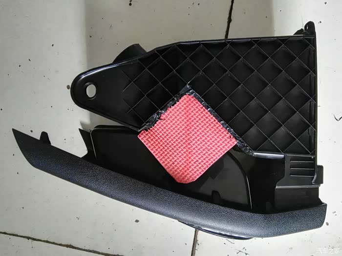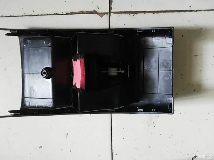 储物盒下对接,考虑到密封性,暂时找不到合适的材料用泡沫板做个对接口,出风口和波纹管的对接,方便以后出风口和中央扶手箱的拆卸!