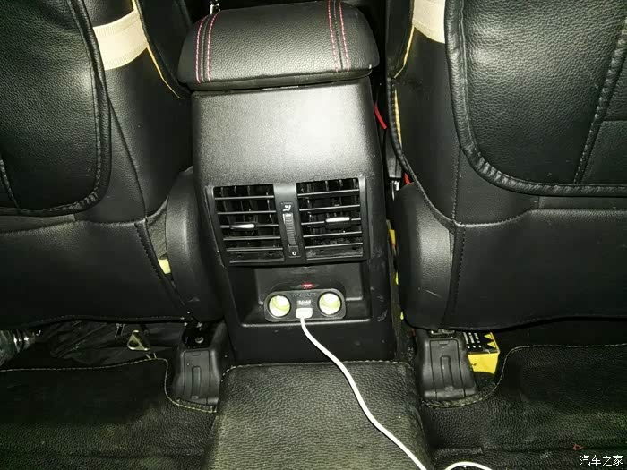 后面又装了个usb电源方便后排充电,过程没拍照记录,在那个后盖兜兜里钻了一个小孔吧电源线穿过去,做了一个2孔插头连接上次从点烟器接过来的预留电线,这个usb接口取店就是前排点烟器的,再把这盒子用双面胶粘贴上,开钥匙才有电不是常电停车自动断电很安全的!